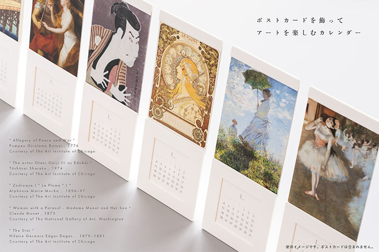 昨年リリースされた『CAZARU(カザル)』は、お気に入りのポストカードを飾って楽しめるカレンダー。どんなインテリアにも自然に馴染むデザインは、「気軽にアートを飾って、暮らしを少し楽しむ」という想いから生まれ、全国のミュージアムショップでも取り扱われています。