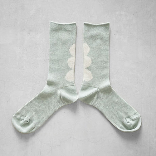 HUIS. さんに出会ったきっかけをつくってくれたのはカットソーブランド yohakuさんと天然灰汁醗酵建て本藍染作家の坂由香里さんという、信頼するつくり手からの紹介というのもUTOKUならでは。1970年式の「巻き取り式ダブルシリンダー」という旧式の編み機によって、低速でゆっくりと編み立てられる靴下は目が美しくそろい、ふっくらしたやわらかな履き心地。上目と下目の二つの針で編むため自然なリブと立体感があり、ゴムに頼りすぎず足にやさしくフィットします。むくみやすい方や靴下の圧迫感が苦手な方からも楽に履けると好評だそう。日常使いに耐える丈夫さがあり、天然由来の抗菌加工が施された糸を使用しているため、清潔で長く使えるのも魅力です。